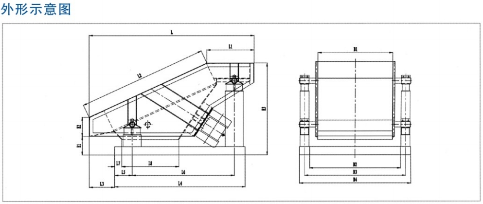 減振系統由橡膠彈簧和卡箍、支承座等組成。底架由料倉及底盤架等組成。本系列振動篩激振源安裝方式可分為上振式和下振式,減振器安裝方式可分為座式或吊掛式。還可以根據用戶需要進行設計制造。